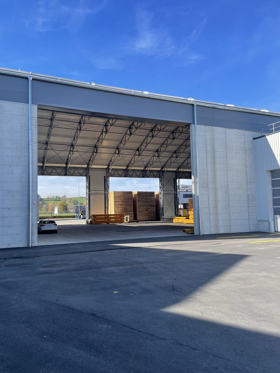 Für die Tschopp Holzindustrie AG dürfen wir eine neue Lagerhalle planen und realisieren. Das Bauvorhaben wird als dreiseitig offene Zelthalle erstellt. Der gedeckte Lagerplatz erfüllt die Ansprüche der Bauherrschaft optimal und passt sich in die bestehende Infrastuktur ein.